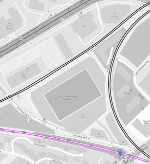 This OpenRailwayMap shows the tracks around the stadium, that has been built for the Premier League football club, which is now called the Gtech Community Stadium.
