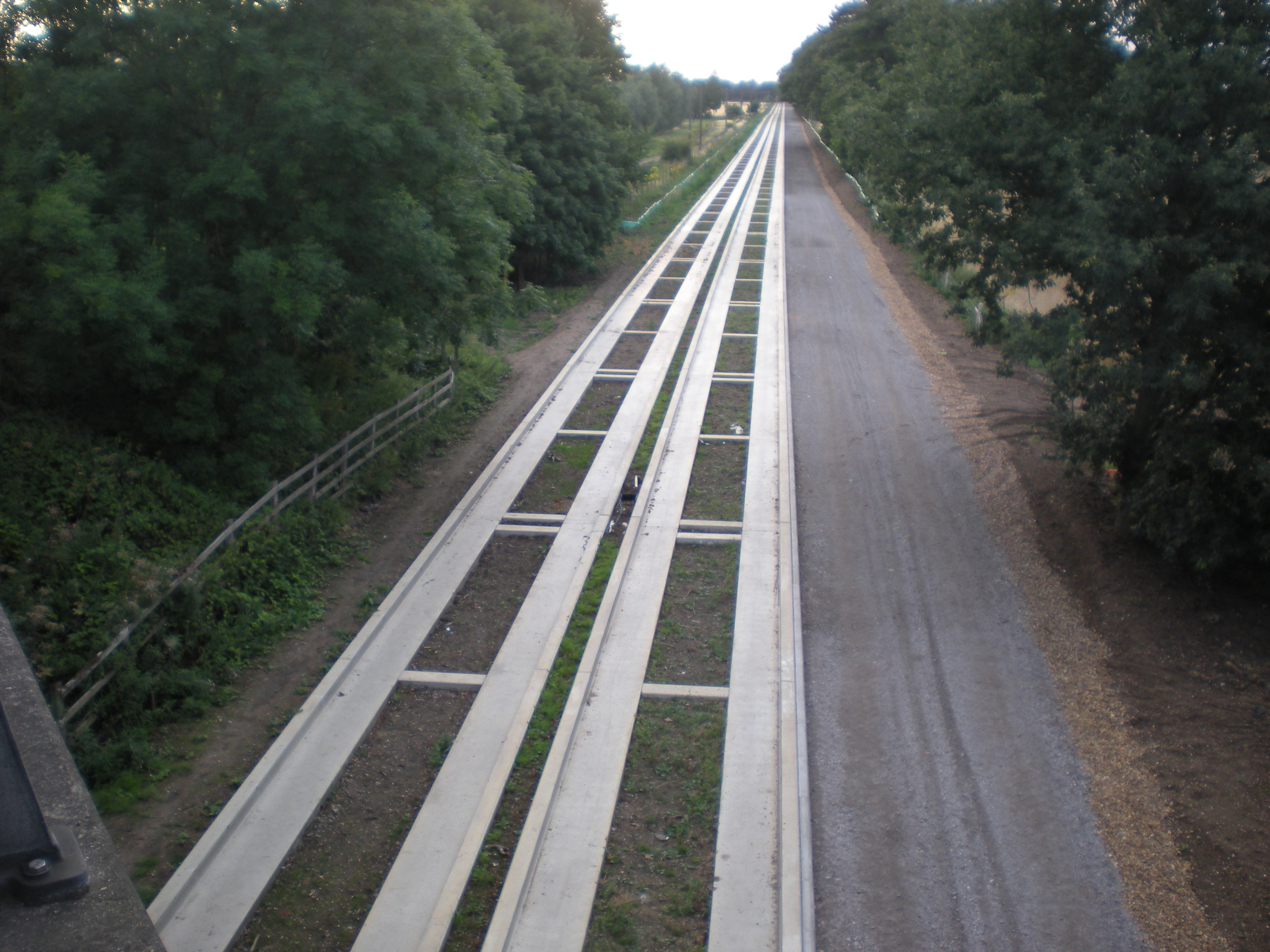 I took this picture where the busway goes under the A14. Note the track at the side, which will be a cycleway.
