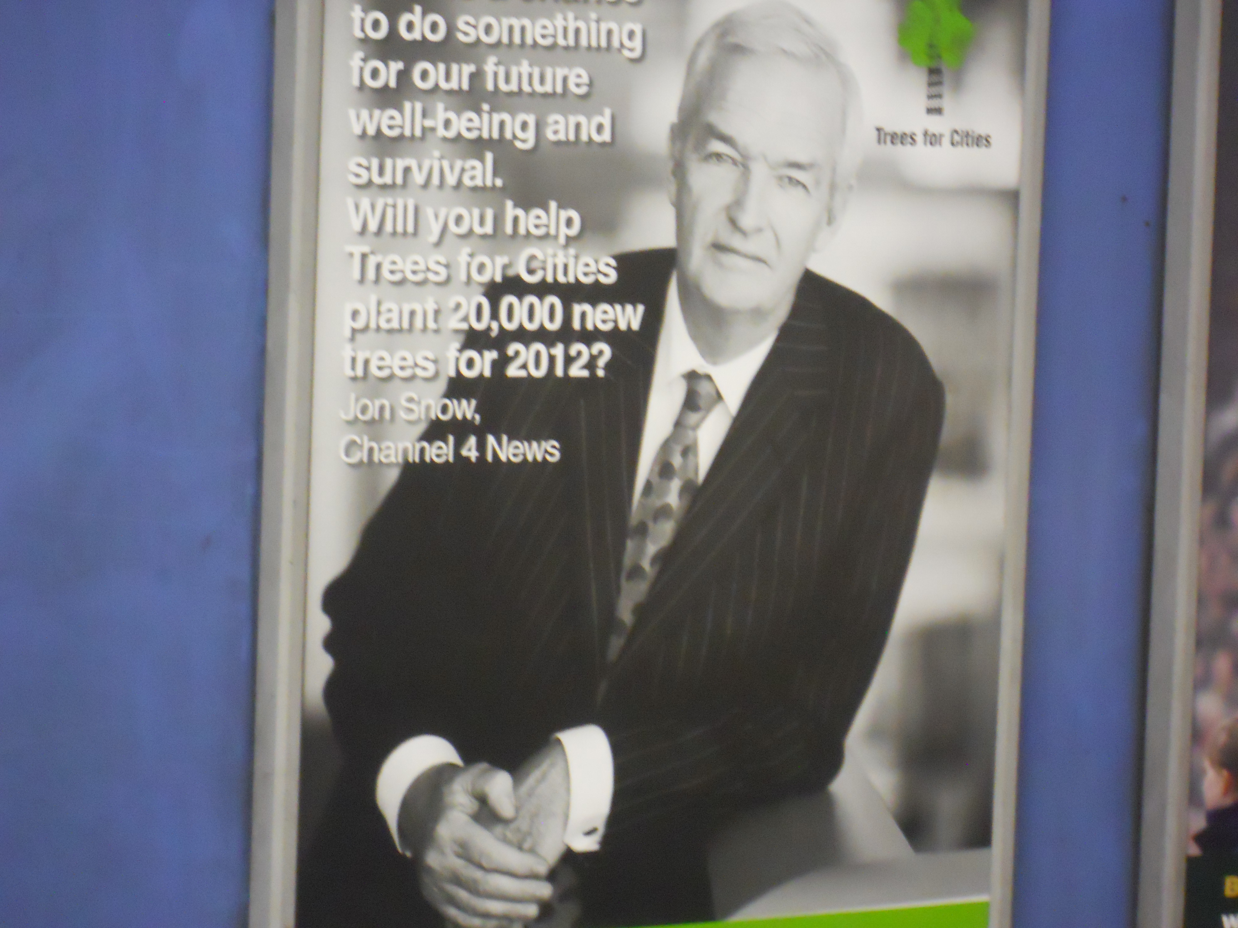 Adverts for Trees for Cities are everywhere on the Underground and they feature Jon Snow.