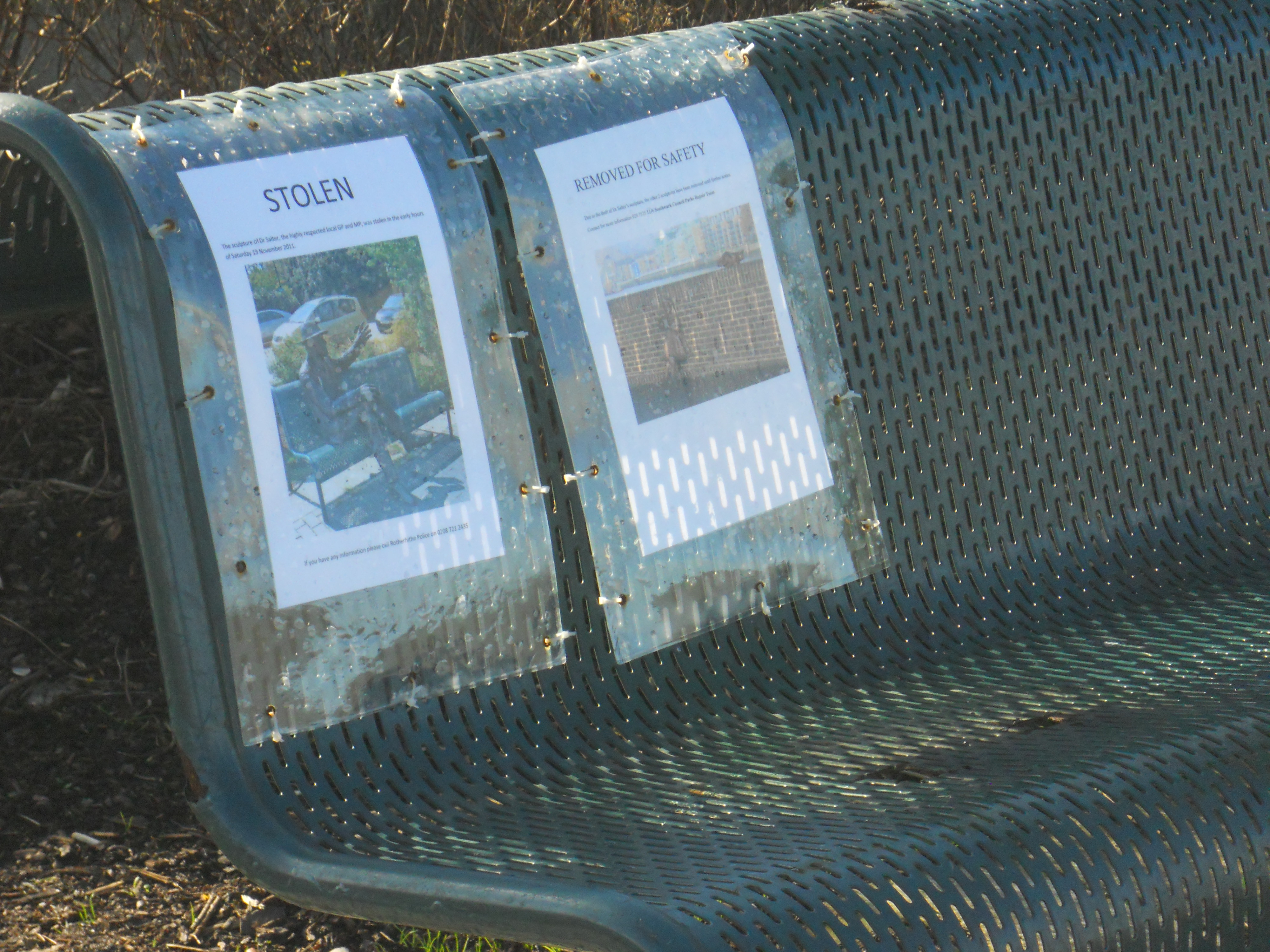 I was upset though to see the bench that had held Doctor Salter’s statue is now bare. A picture of it is in this set of pictures.