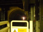 I was looking from the Northbound platform, just by the exit and the stairs that lead up to the street. When the station was designed, they decided to put protective railing to stop you failing on the line, but these do not obscure the view down the tunnel as the train approaches.
