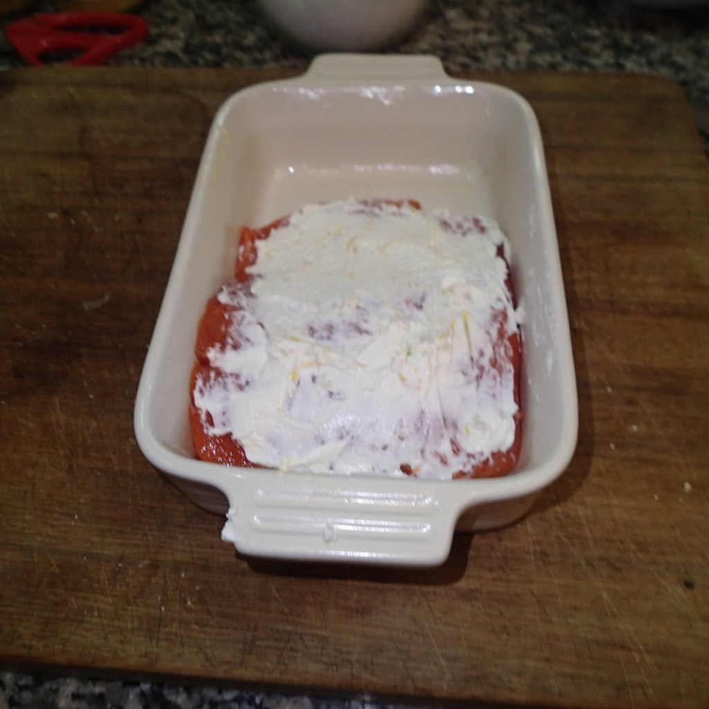 Serial Cooking – Baked Salmon With Parmesan And Parsley Crust » 4. Spread With The Creamed Cheese Mix