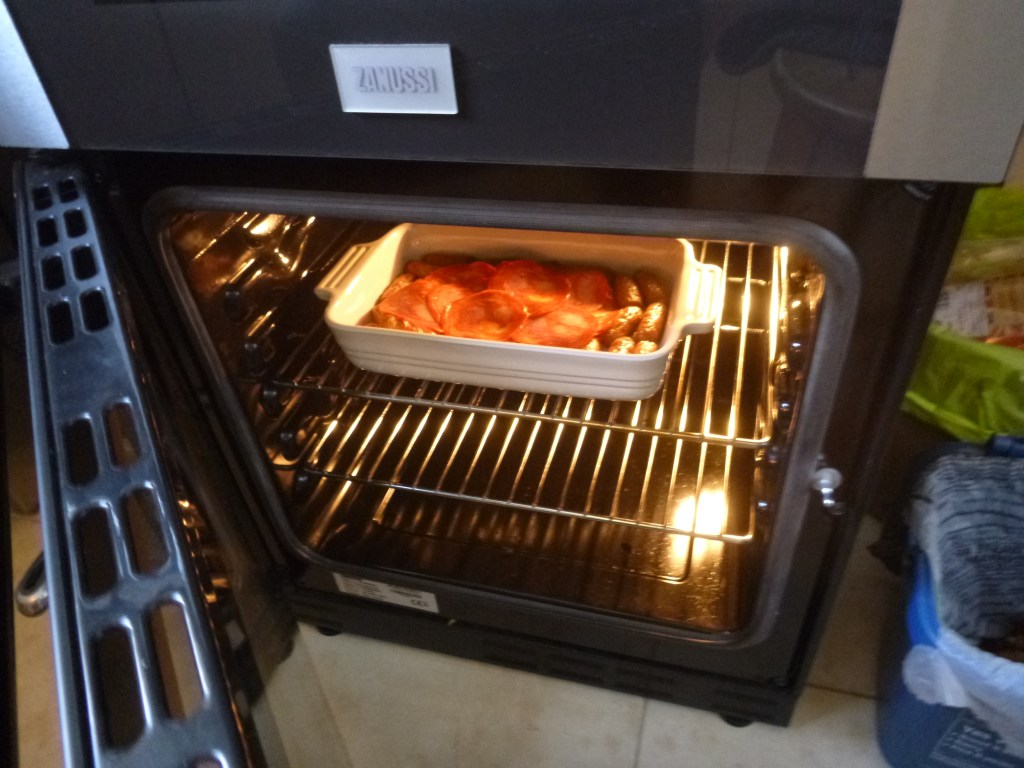 Serial Cooking – Roast Sausage And Lentils With Wild Rocket And Cherry Tomatoes » 3. Put Sausages In Oven At 200 C For 15 Mins.