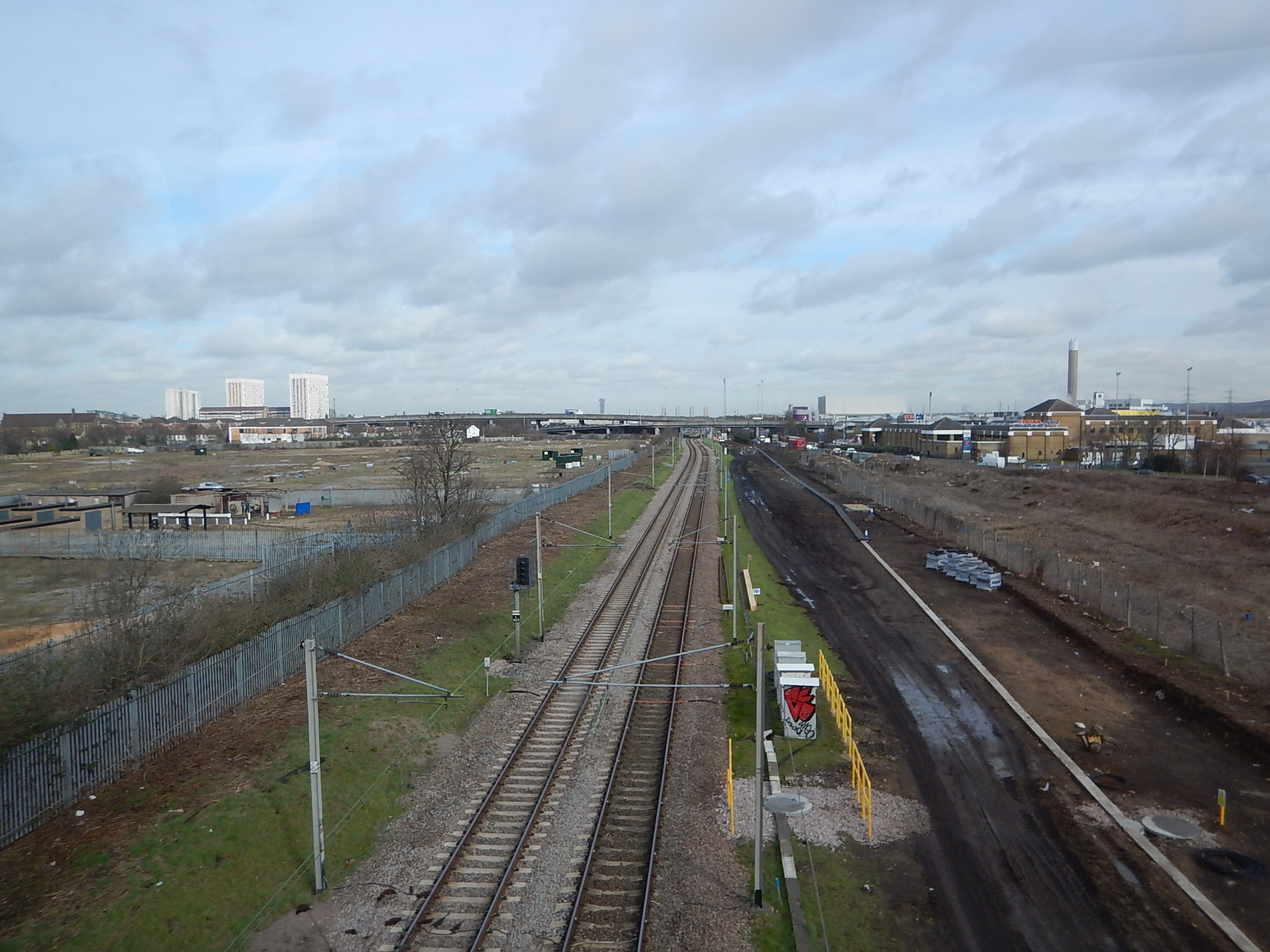West Anglia Route Improvement – Angel Road Station – 27th February 2017 » Over The West Anglia Main Line – Note Works For The STAR Track To The Right Of The Main Line