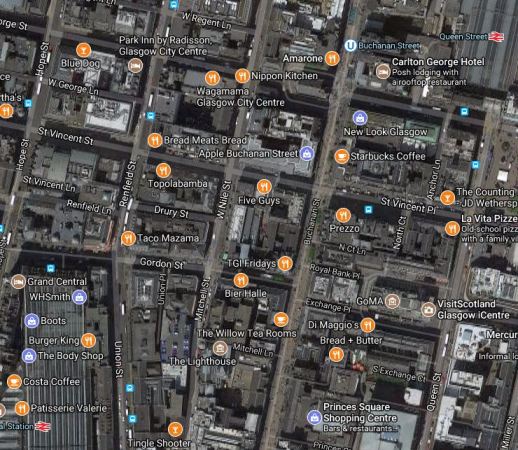 From the restaurant, I continued down West Nile Street, before turning right for Glasgow Central station.
