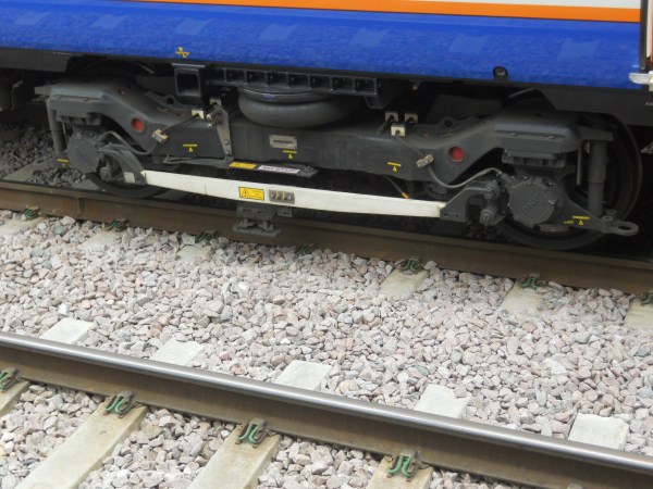 The picture shows the bogie on a Class 378 train.