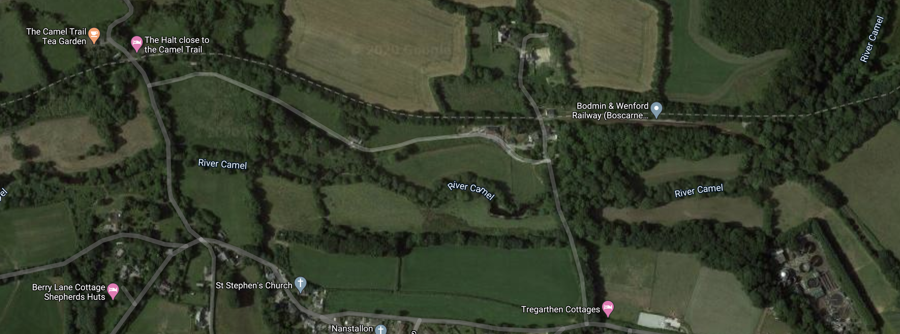3. The Camel Trail is marked on Google Maps as a dotted line and it can be followed to where it meets the Bodmin and Wenford Railway at Boscarne Junction station.