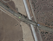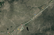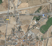 This Google Map shows Cañaveral station on the current line and the track of the new high speed line.