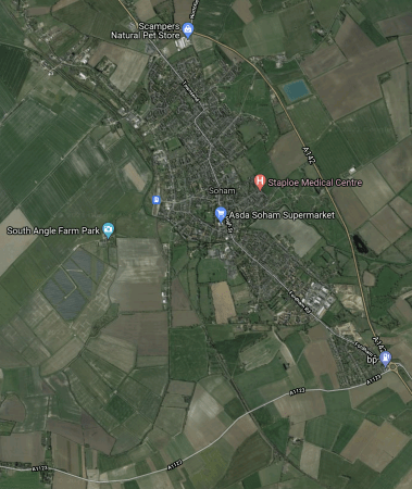 This Google Map shows the town of Soham.