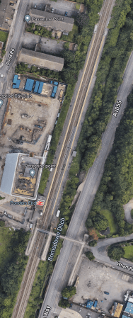 - There seems to be plenty of space between the railway tracks and the A1055 road.