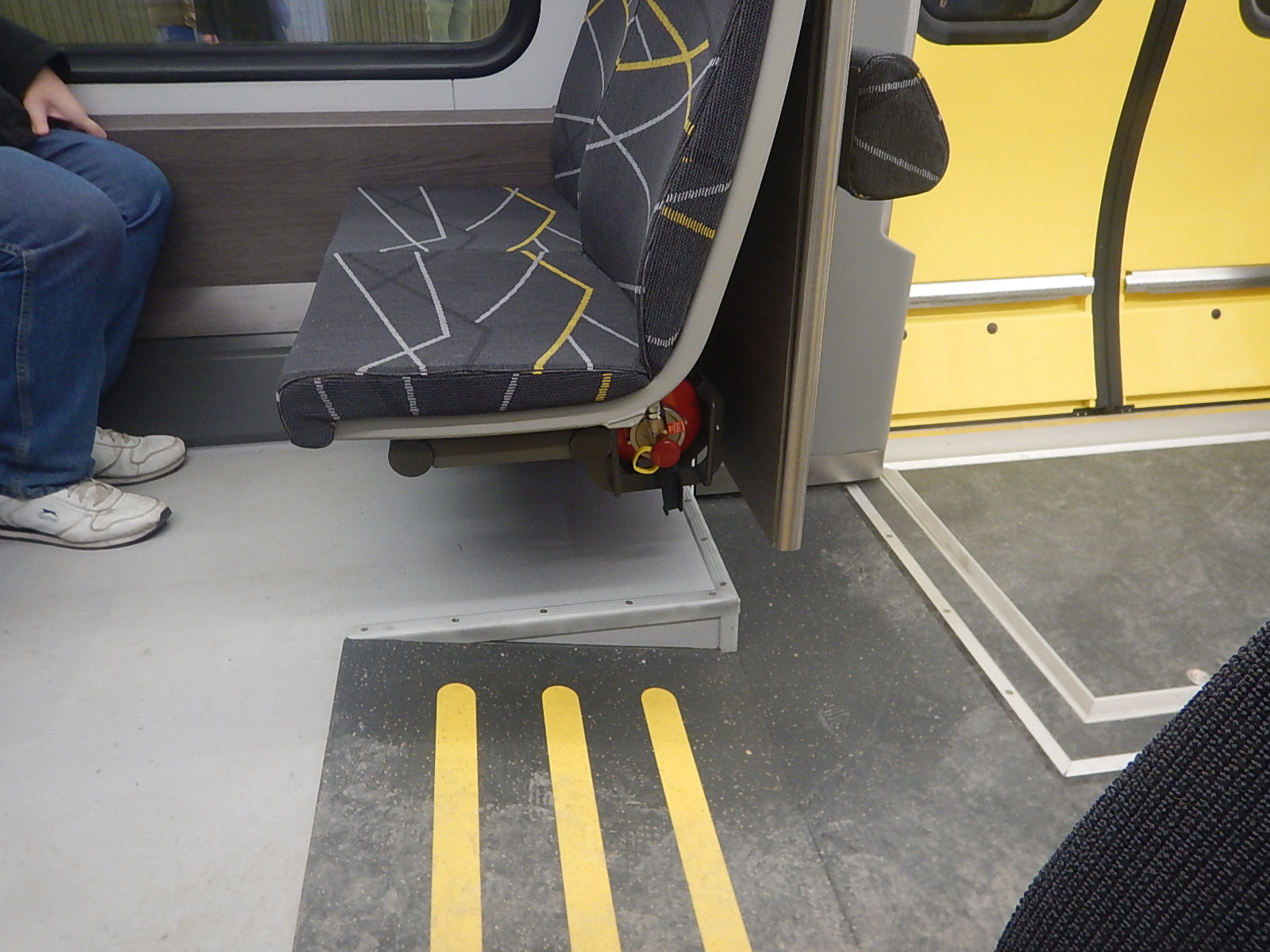 Riding In A Train Designed To Run On Battery Power » Fire Extinguisher Behind The Seat