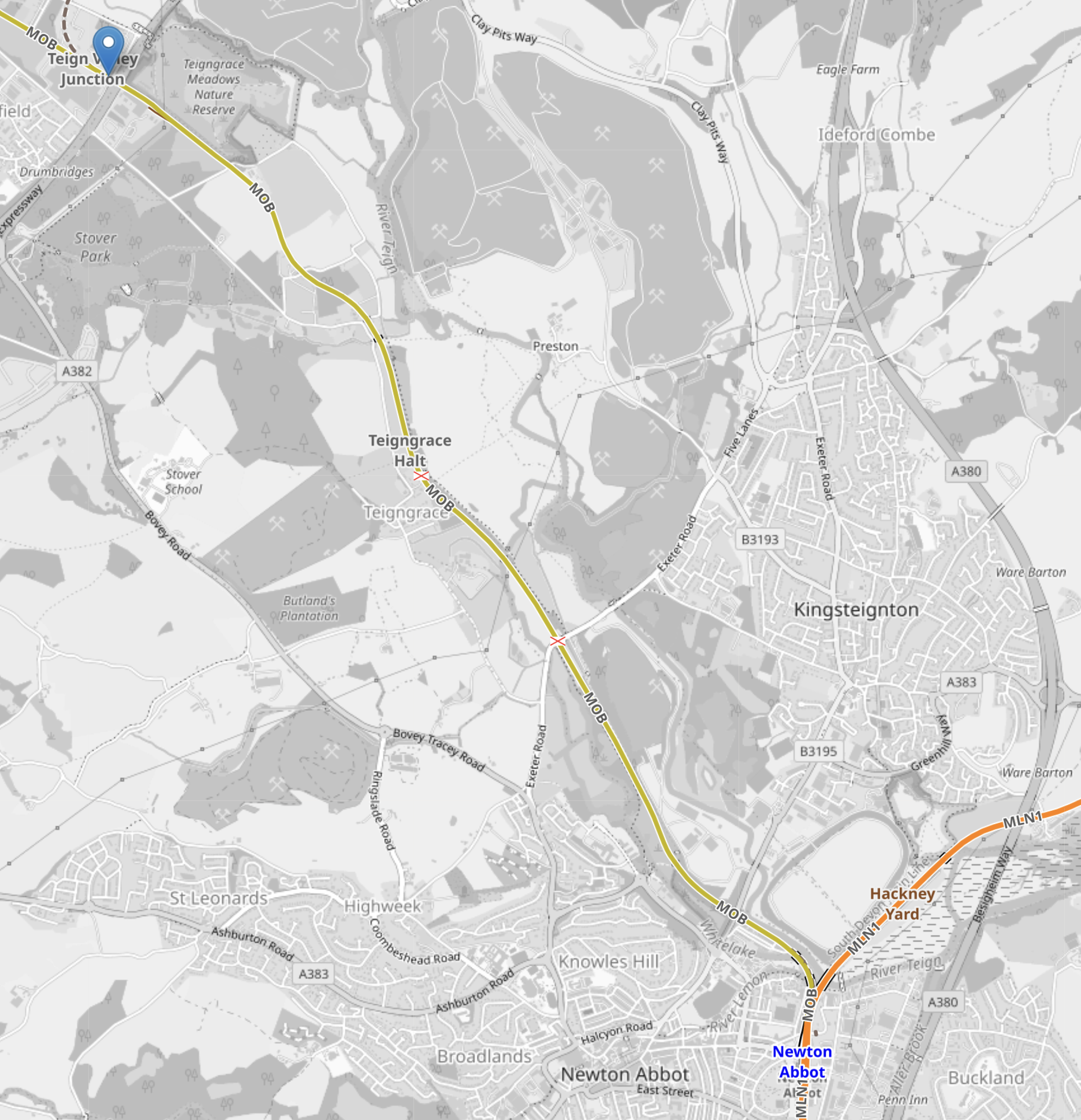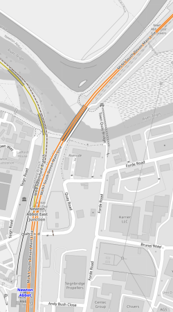 - The orange track is the Cornwall Main Line, that goes through Newton Abbot station to Plymouth and Penzance stations.