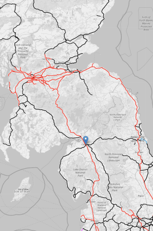- The blue arrow in the middle of the map indicates Carlisle.