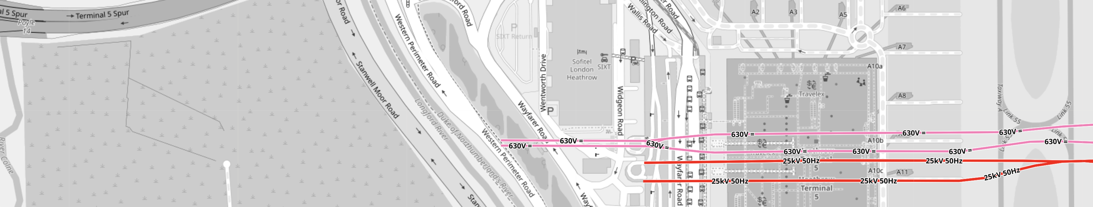 - This OpenRailwayMap shows Terminal 5 to a larger scale.