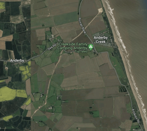 This Google Map shows Bicker Fen and Anderby Creek.