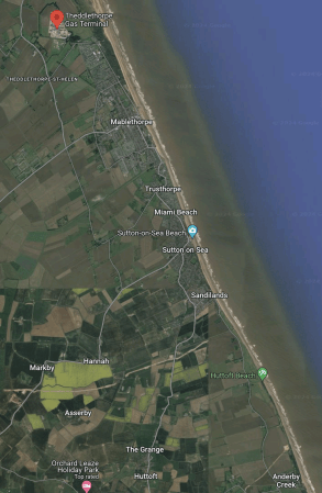 This second Google Map shows the Theddlethorpe Gas Terminal and the North of Mablethorpe.