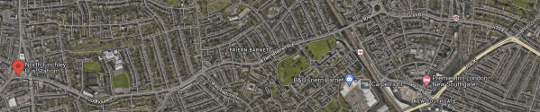 This Google Map shows the route between North Finchley bus station and Arnos Grove Underground station.