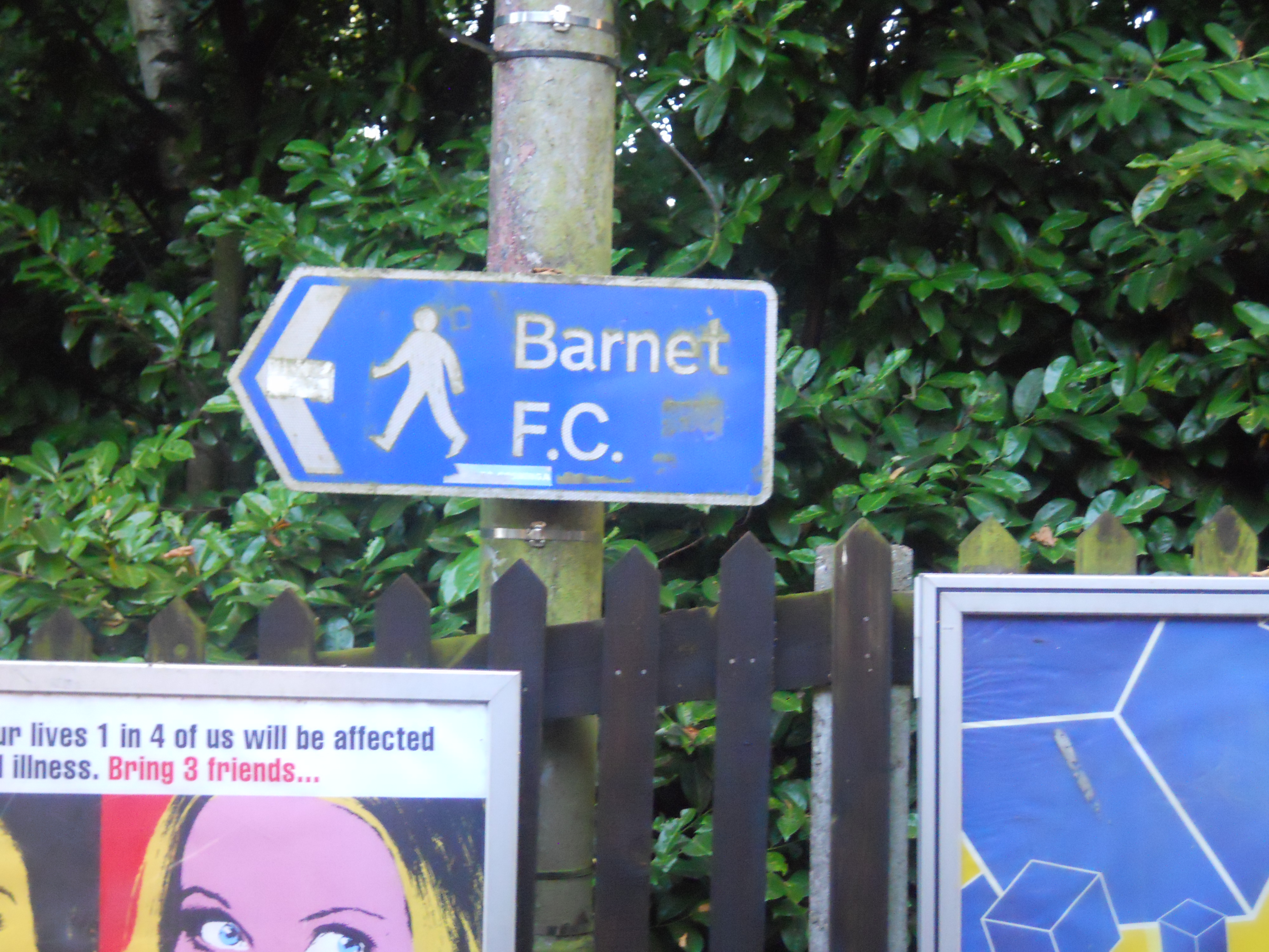 Barnet is a surprisingly difficult club, as it lies between Aston Villa and Barnsley. So it’ll have to be done quickly on a trip between Euston and St. Pancras. In other words it’ll be two trips on the Northern line to High Barnet. I’d only ever been once before, when I was about seven to see Enfield play them with my father, but C as a child used to go regularly with her father, on their bicycles.