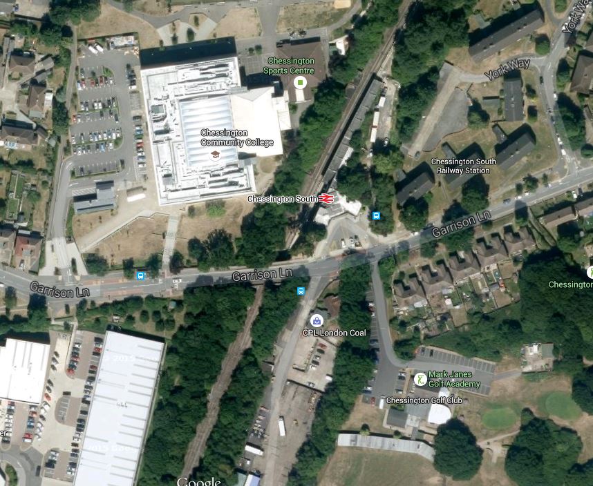 So look at this Google Map showing Chessington South station, the route of the unbuilt branch and Chessington World of Adventures.