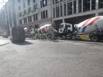 Perhaps in view of the location, the collective noun is a pollution of cement mixer trucks.