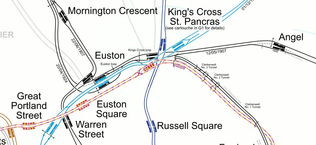 - The four tracks shown in black are the West Coast Main Line, with Watford to the West and Euston to the East.