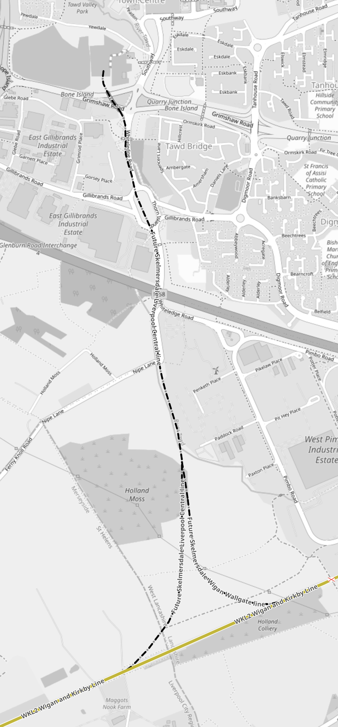 This map from OpenRailwayMap shows the branch line.