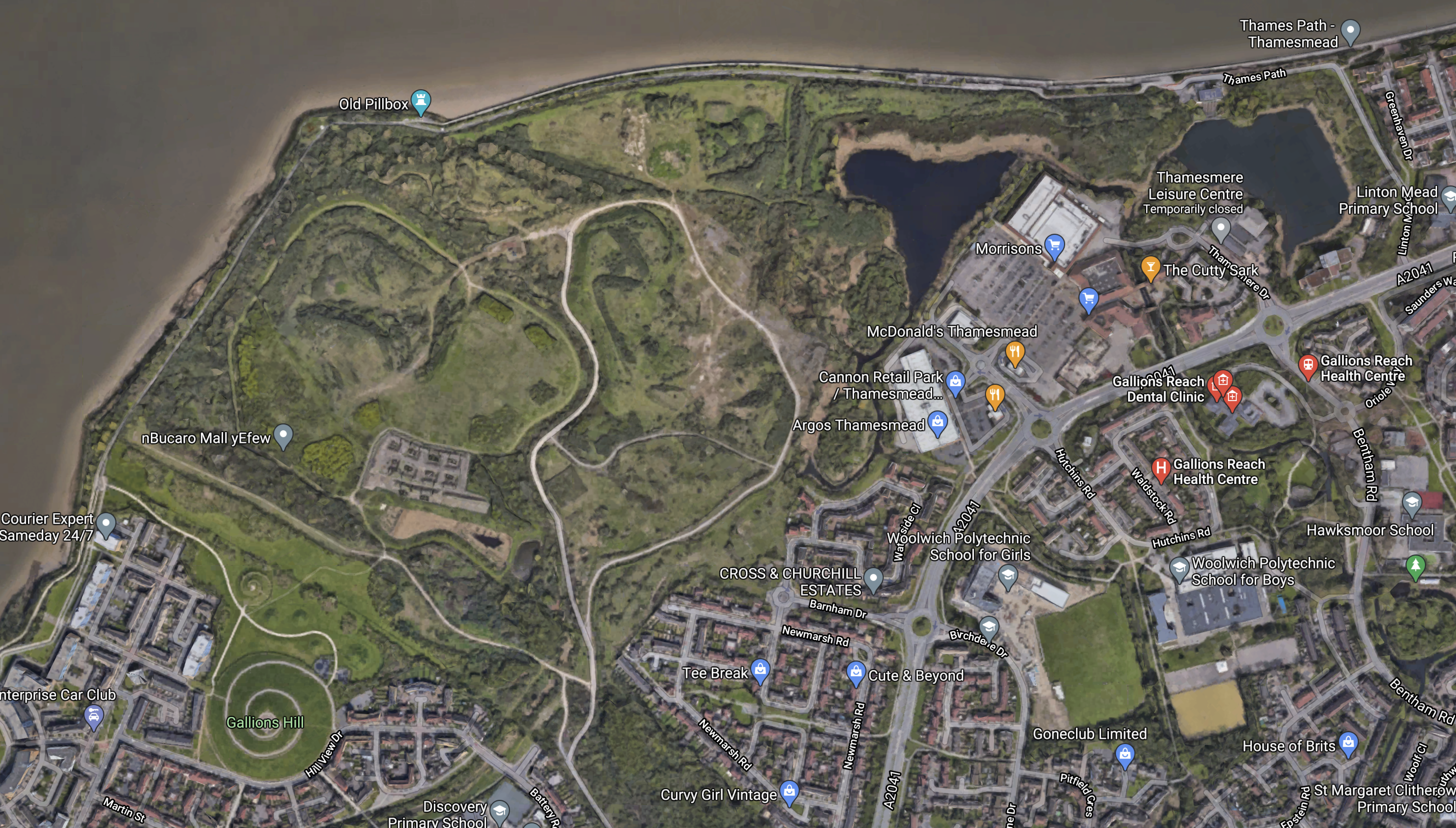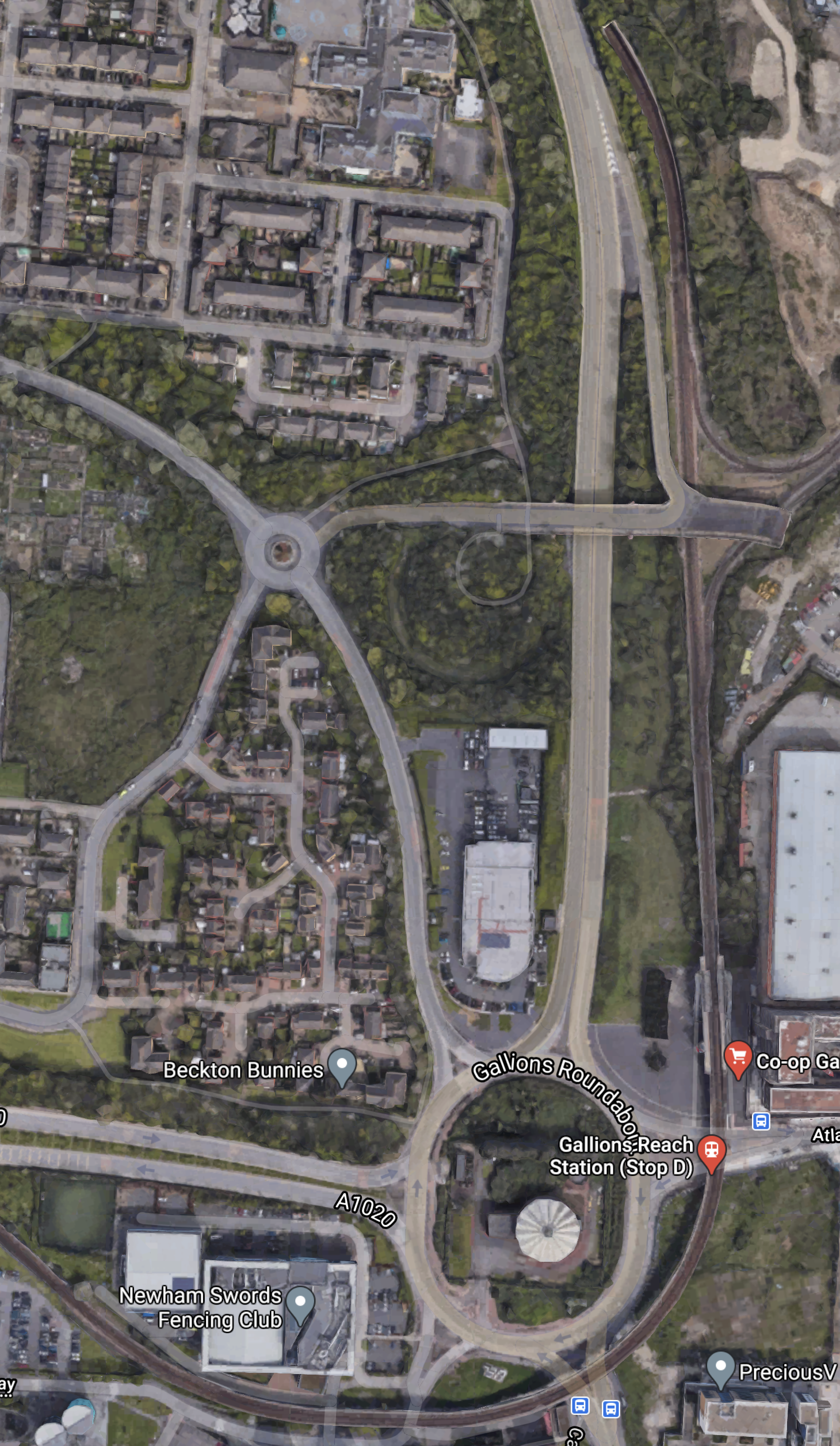 This Google Map shows Gallions Roundabout and Gallions Reach station.