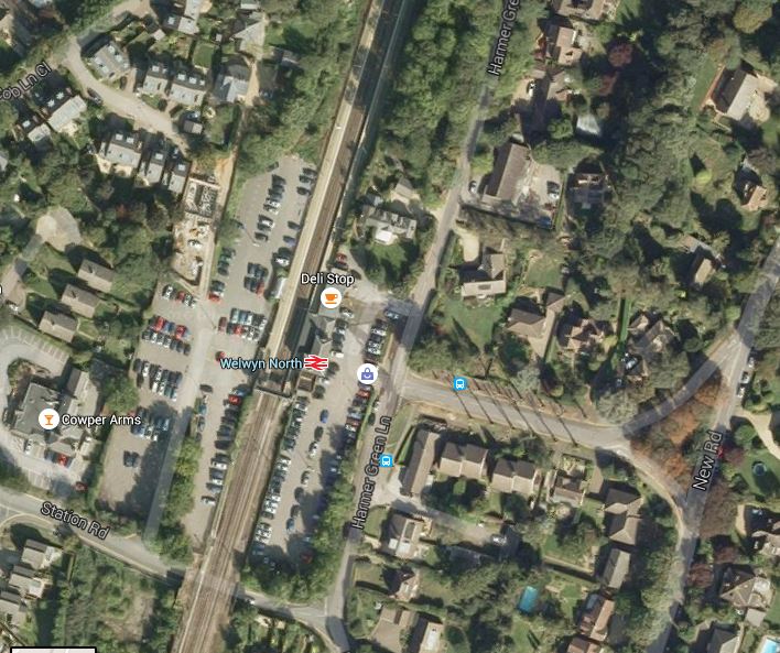 The images, probably shows another problem in that four-tracking the line through Welwyn North station would probably close the car parks.