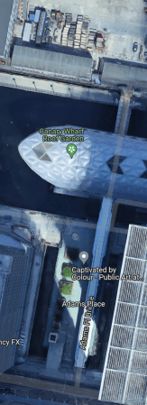 This Google Map shows the bridge that leads South from Canary Wharf station.
