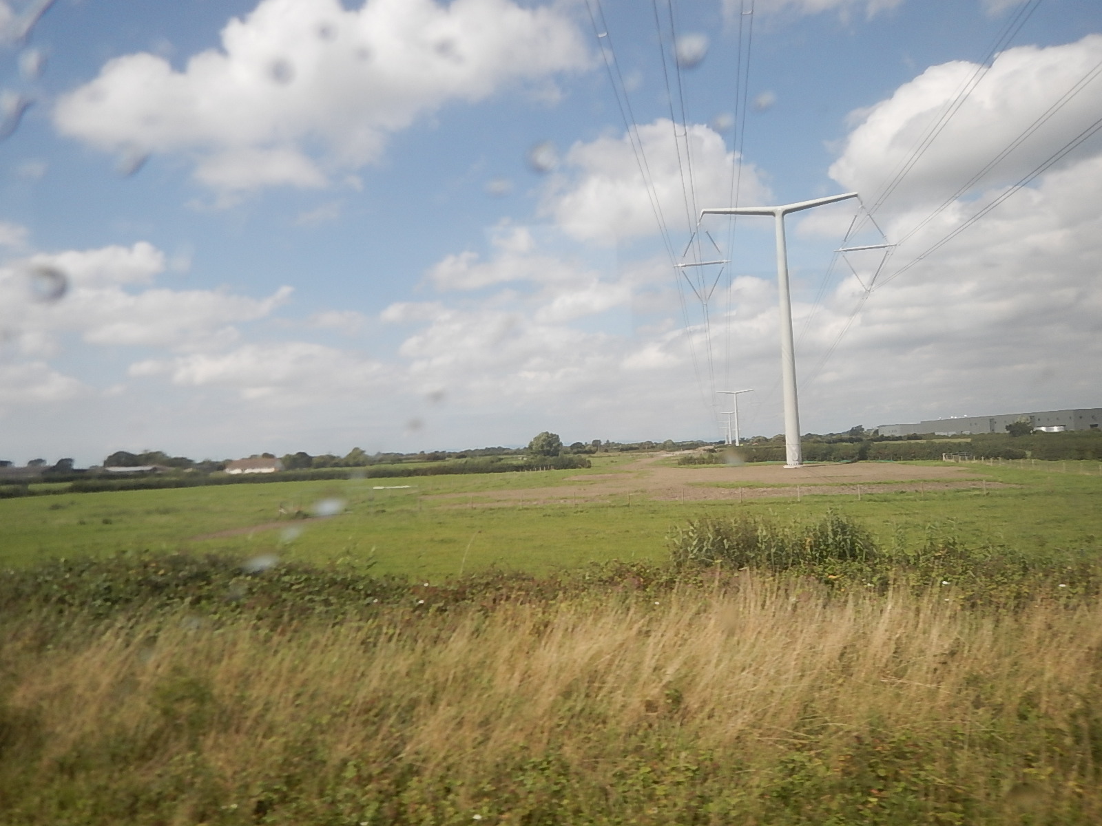 - Final conductors fixed into place on a row of T-pylons near Yatton, North Somerset