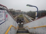 Note the pedestrian bridge across the tracks with steps going down to the platforms.