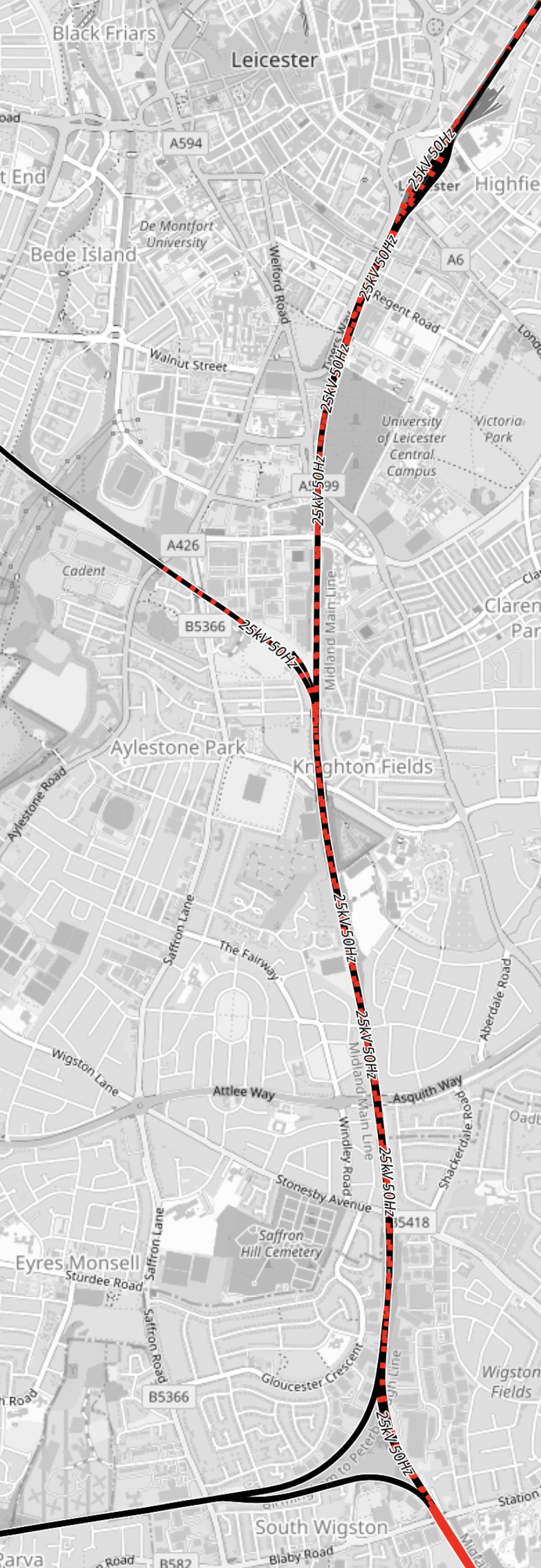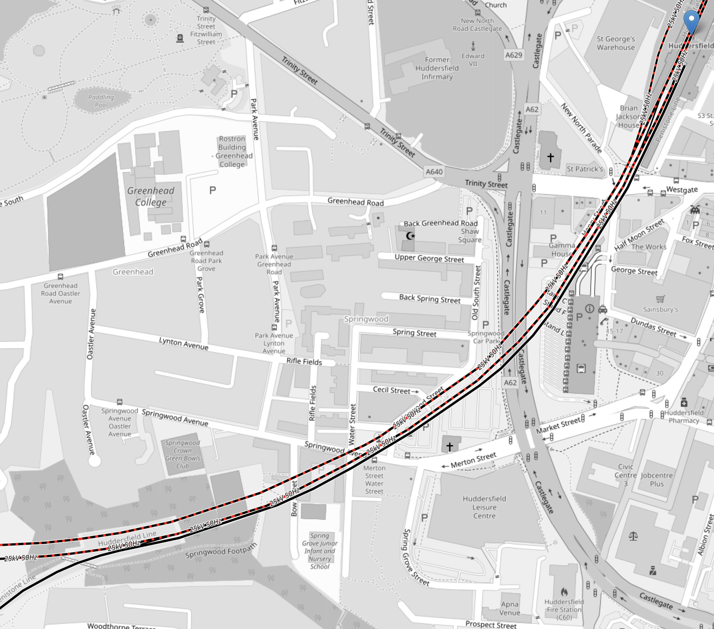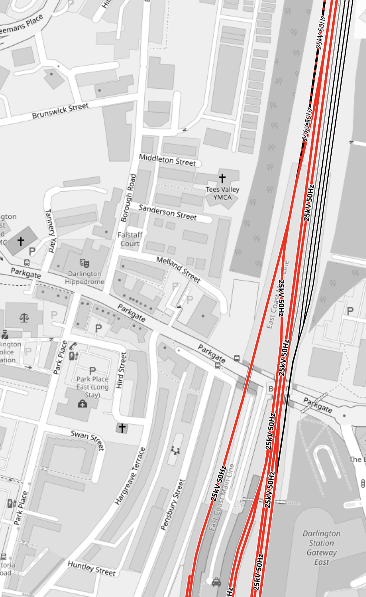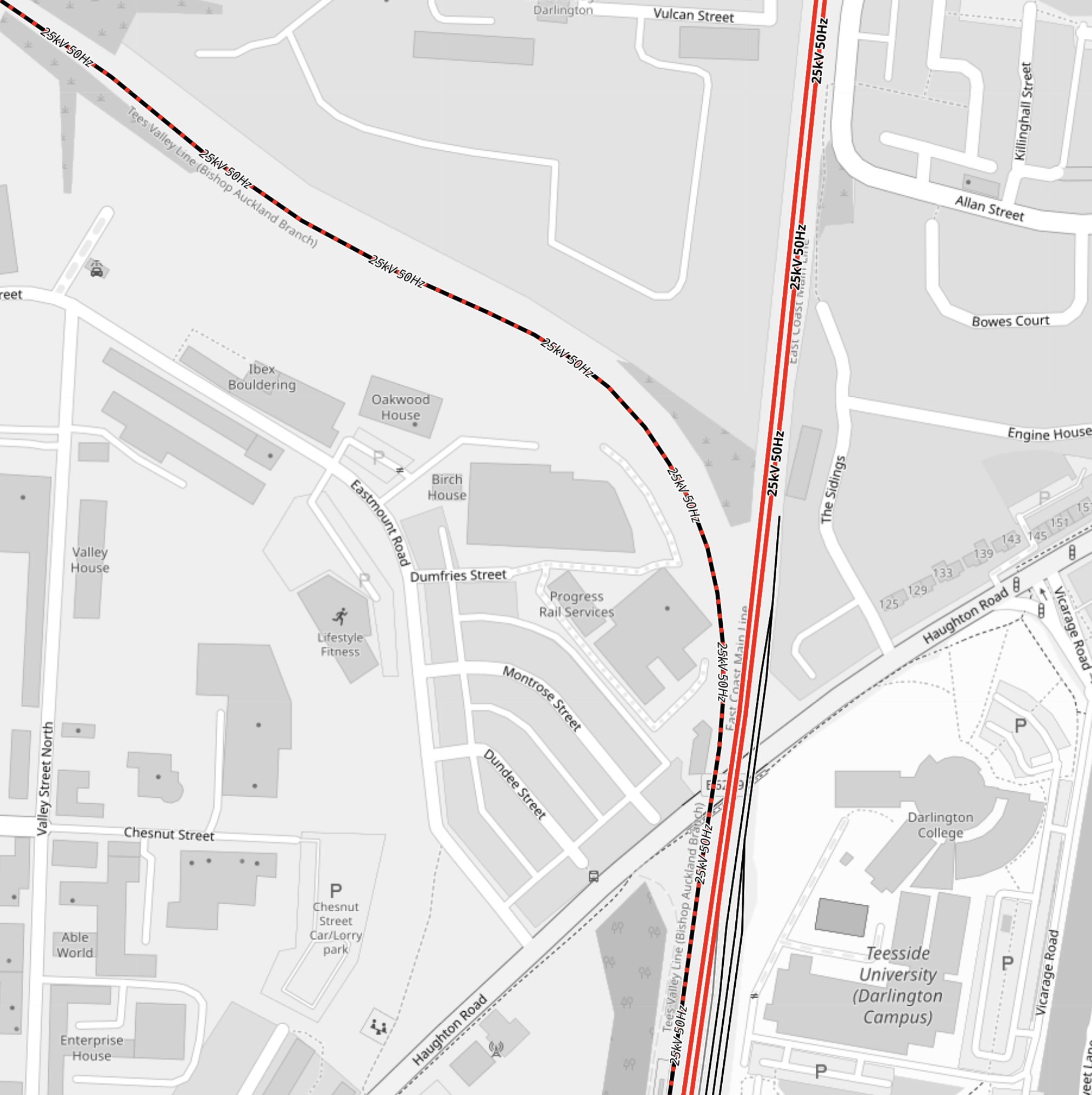 - The red tracks are the Liverpool-Manchester lines.
