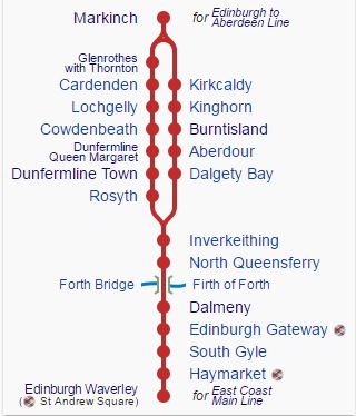 - To the North of the bridge, the line splits and connects to the large circular railway, which is the Fife Circle Line.