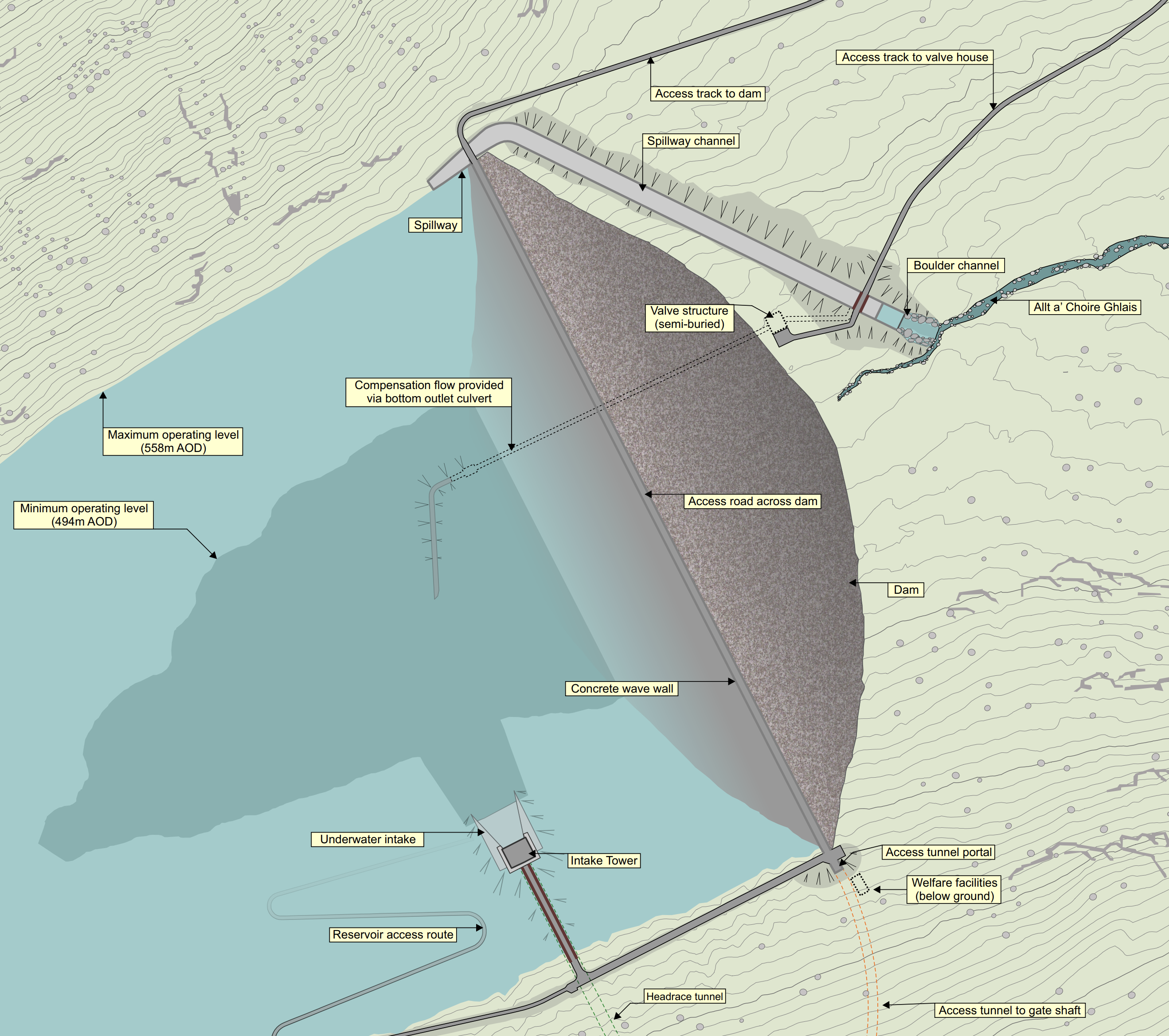 - The upper reservoir will be in the mountains to the North-West of the loch.