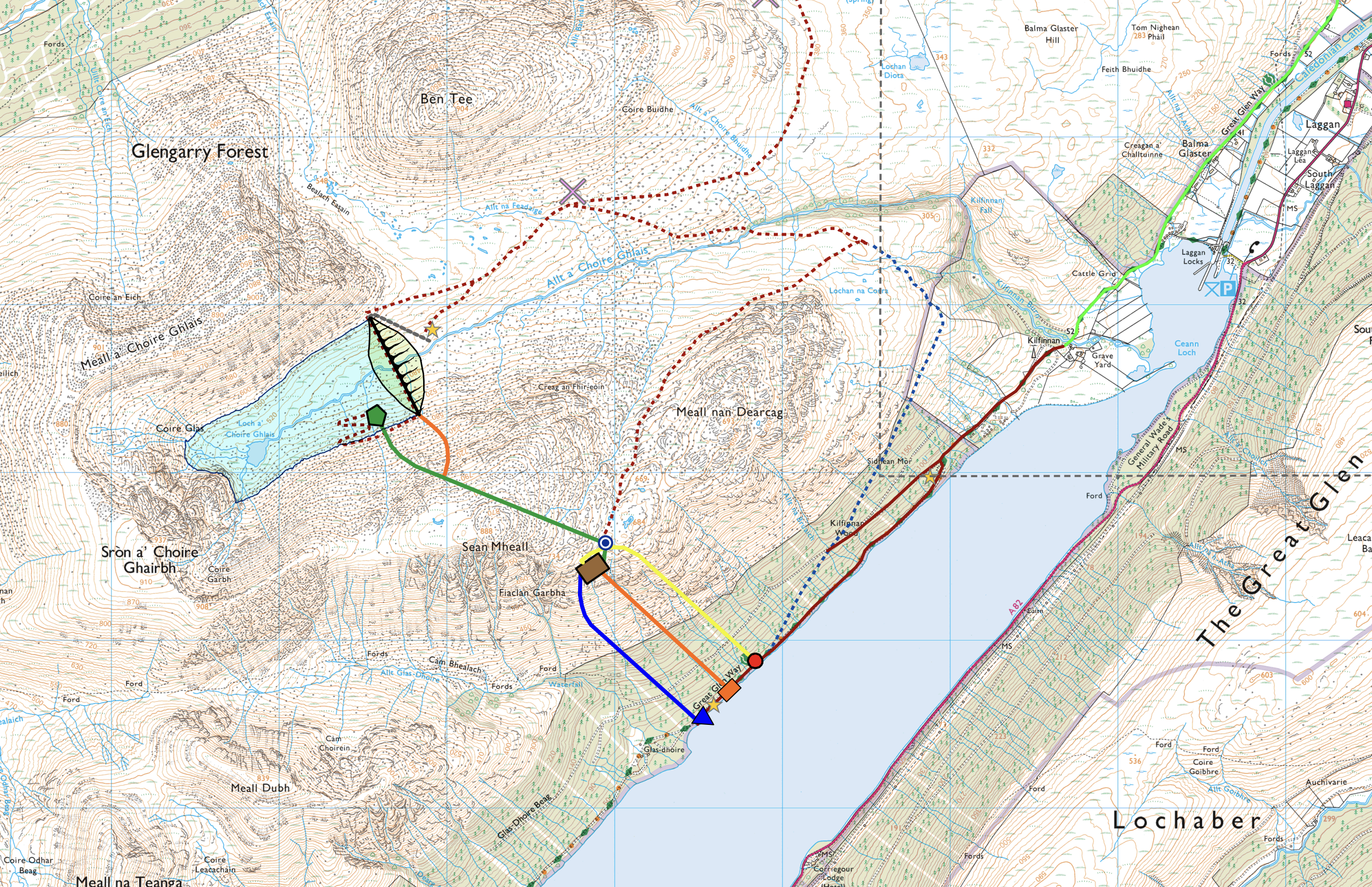 - In the South-West corner of the map, Loch Lochy can be seen.