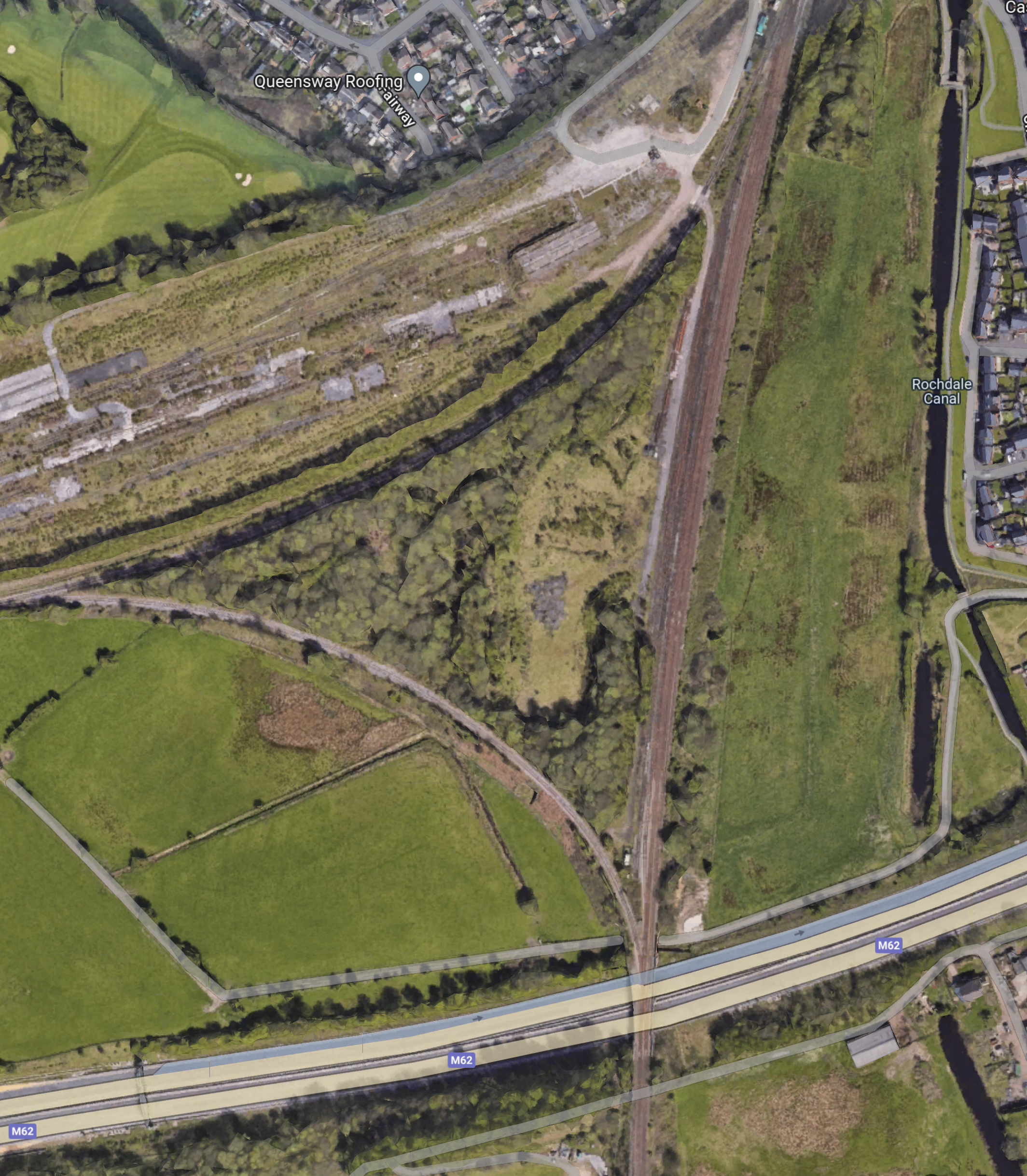 - To the North of the motorway, there is a large triangular junction, that connects the heritage East Lancashire Railway to the Calder Valley Line.