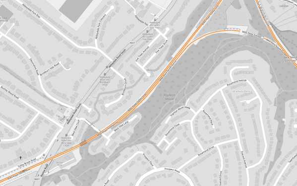 - Dore Lane and the B 6001 appear to pass under the railway.