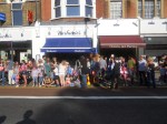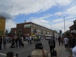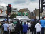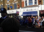 The crowds weren’t that big, but this was because most of the people were at Stepney Green itself, rather than on the main road, by the Tube station. Probably sensible, as it is one of the main roads in and out of London.