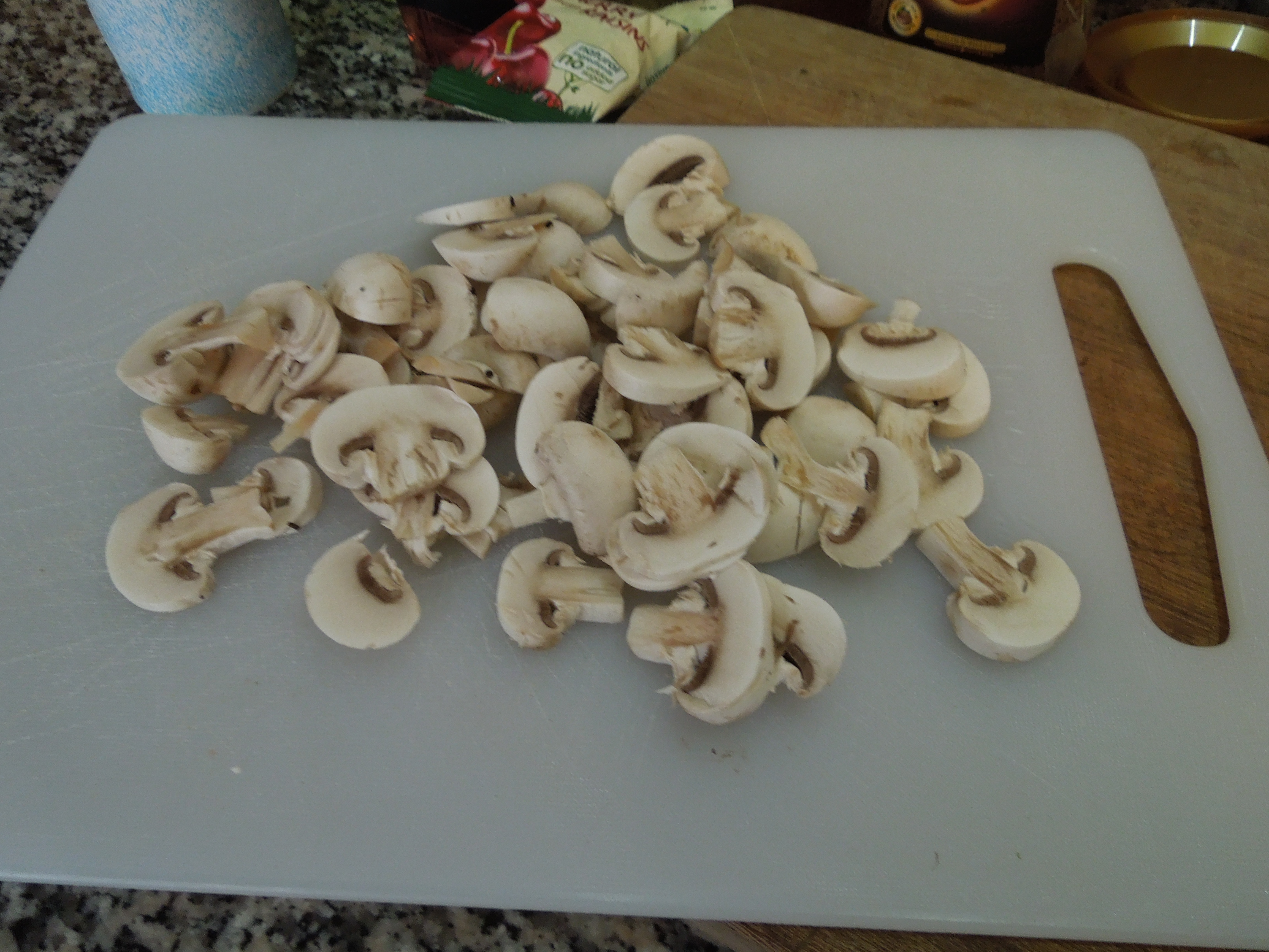 Firstly, whilst the peas were cooking, I sliced the mushrooms