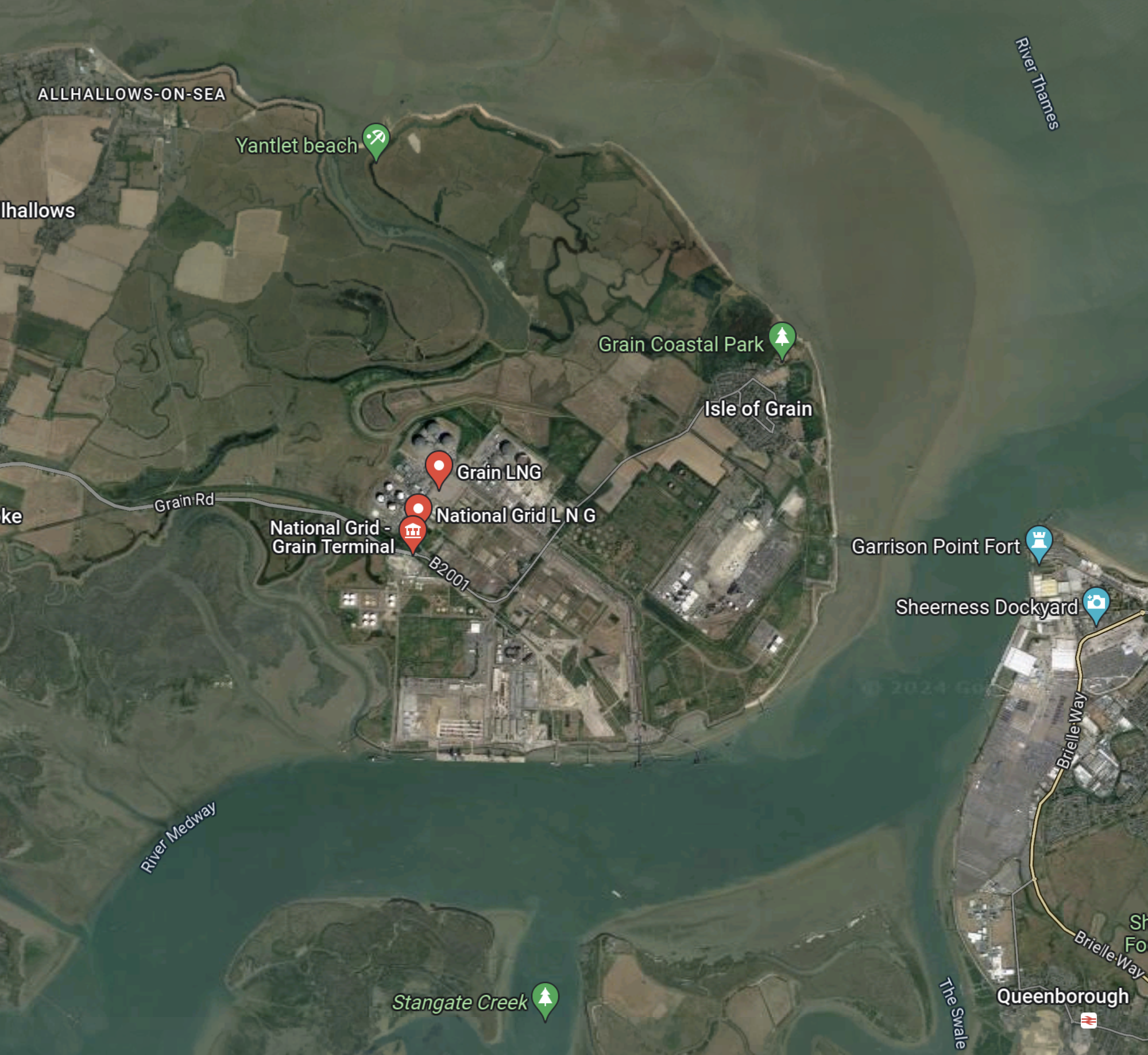 This Google Map shows the location of Grain LNG on the Isle of Grain.