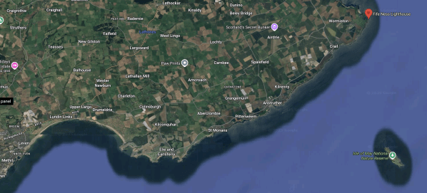 This second Google Map shows the Fife Coast and the Isle of May.