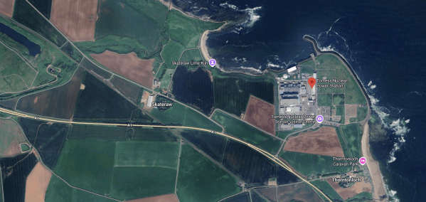 - The red arrow indicates Torness power station.