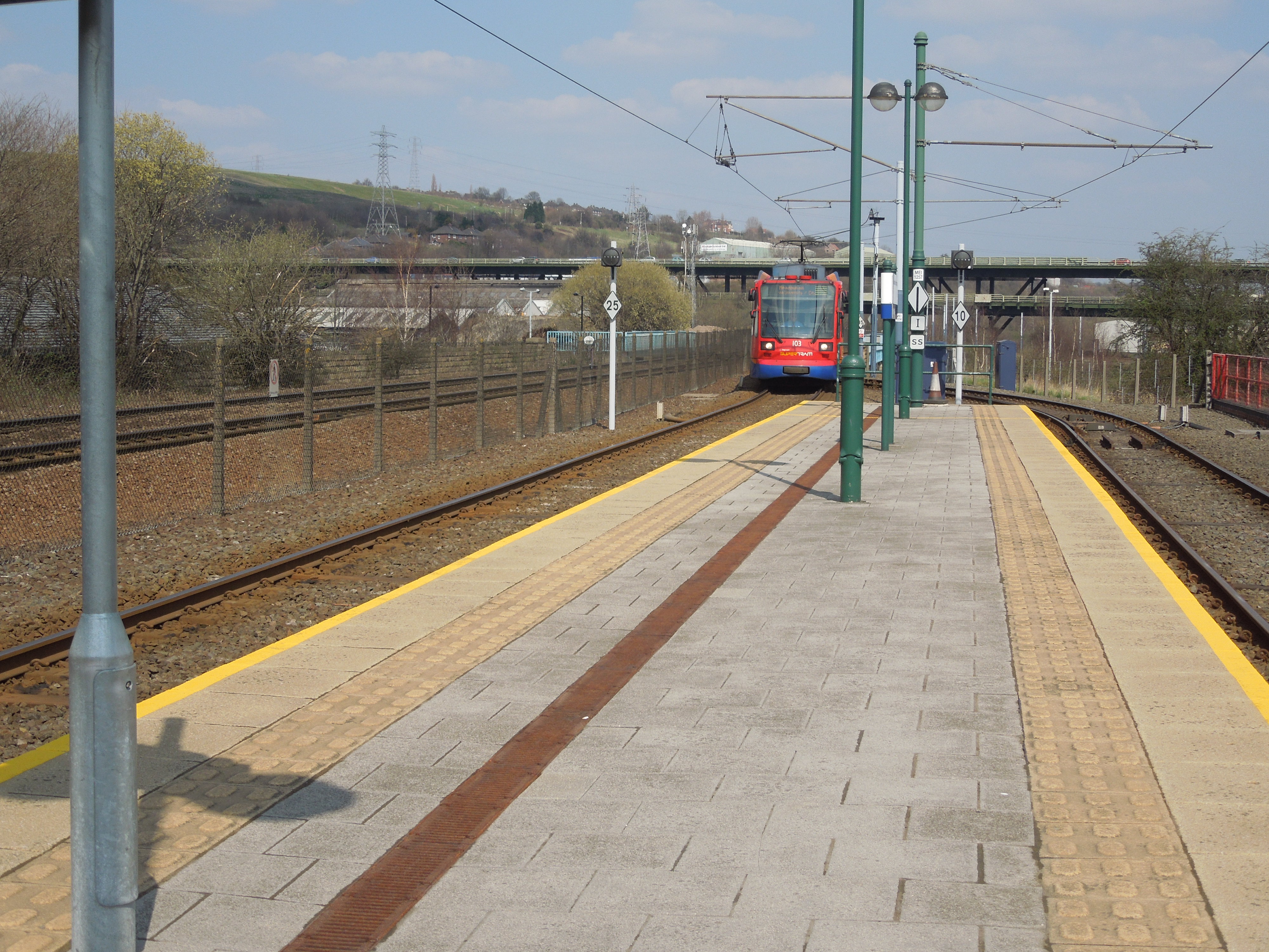 This picture was taken as the tram arrived. Note the lack of seats. One of the London shopping centres has a garden, where you can sit in the sun. Eastfield certainly will have, as it is just a short walk to the Olympic Park. Meadowhall should provide something!