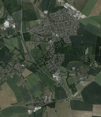 Note, that the railway seems to mark the development limit for the town.