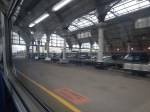 All platforms are the same level and you can walk from one side of the station to the other between the buffer stops.