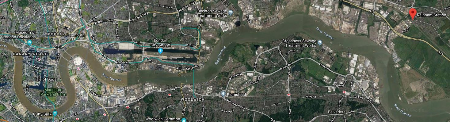It is different to the original proposal of a Docklands Light Railway extension to Dagenham Dock, which stayed on the North bank of the Thames.