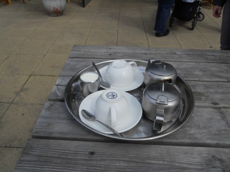 The picture shows the two cups of tea we bought at the Markfield Museum.