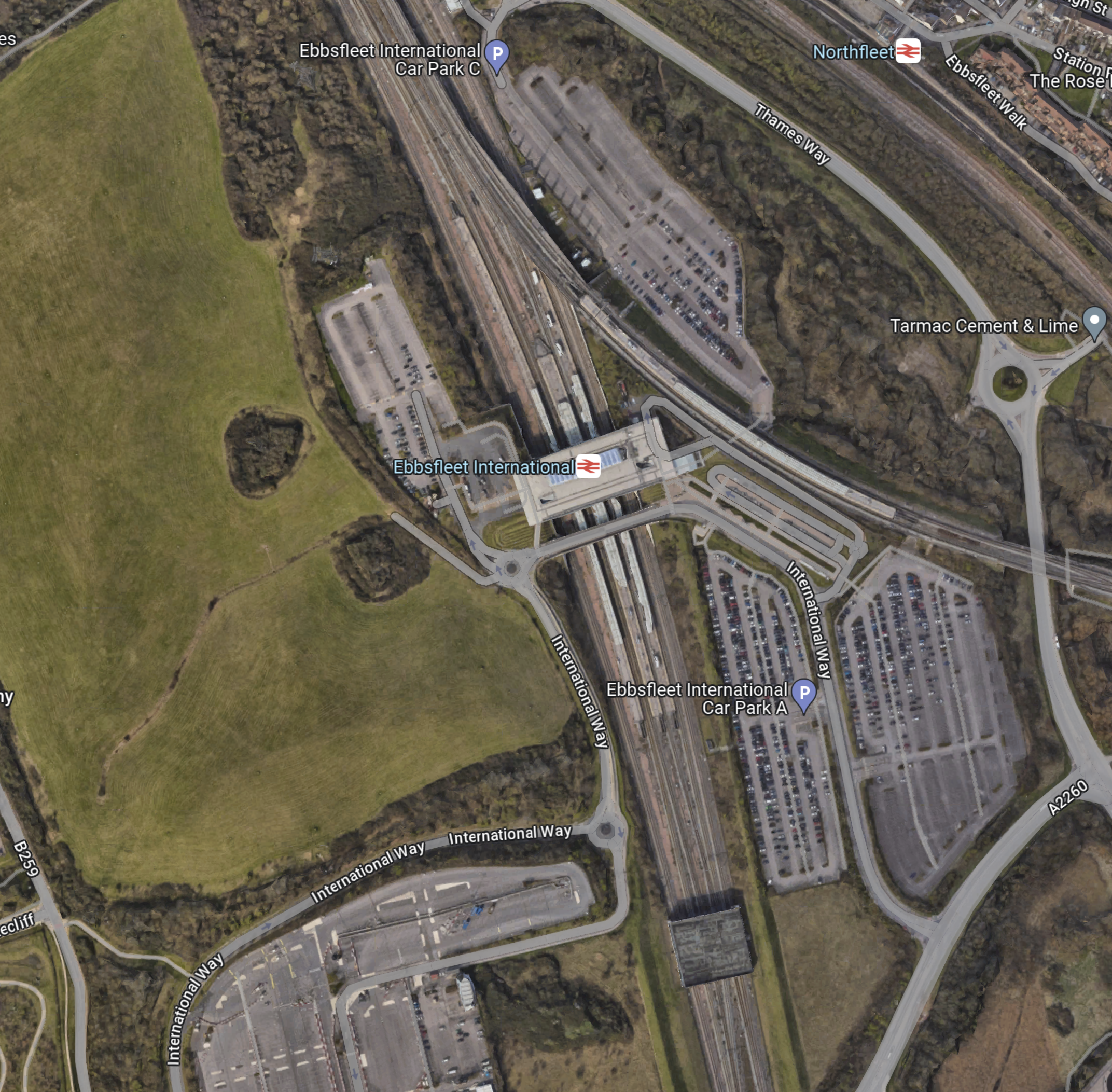 - Northfleet station is in the North-East corner of the map.