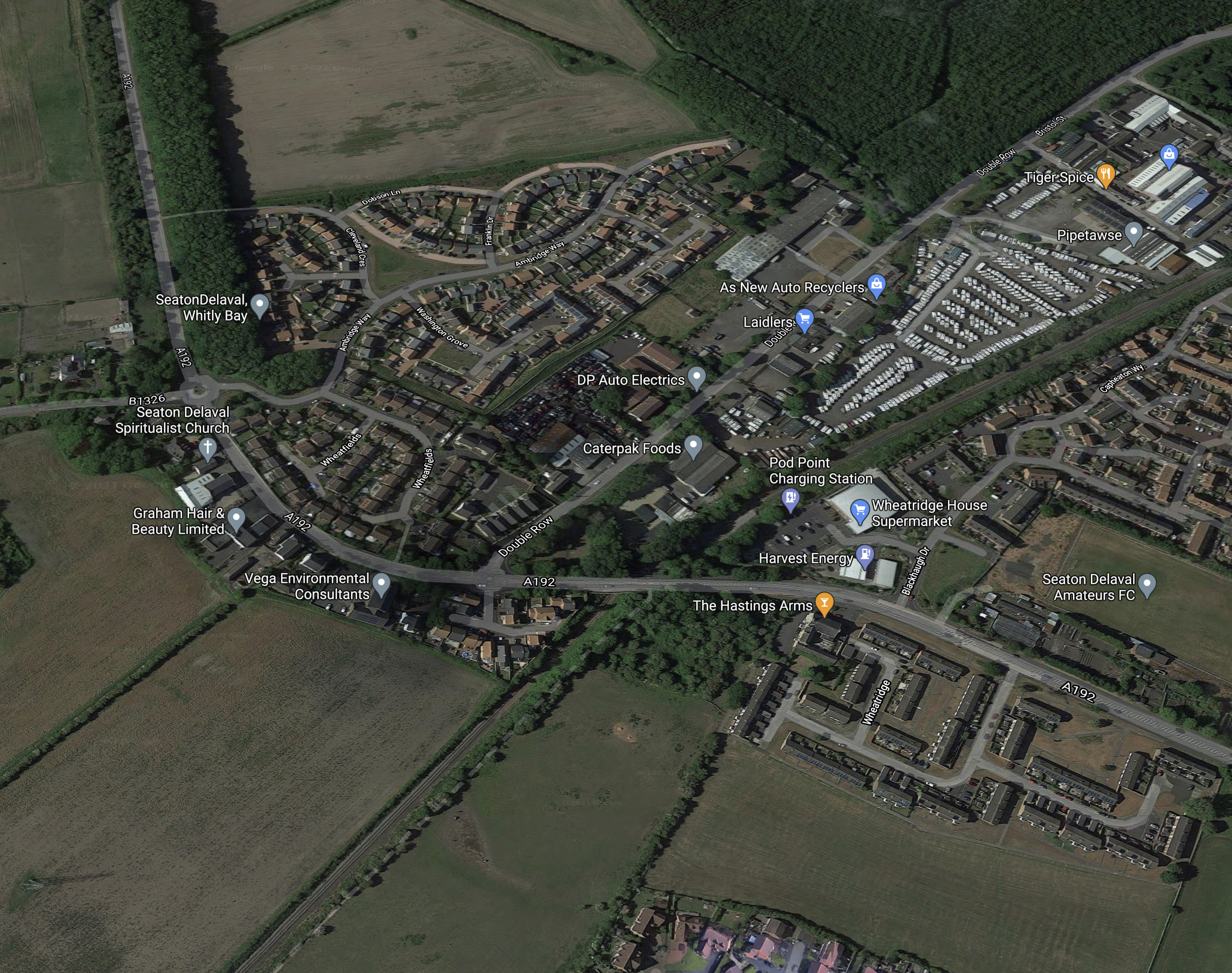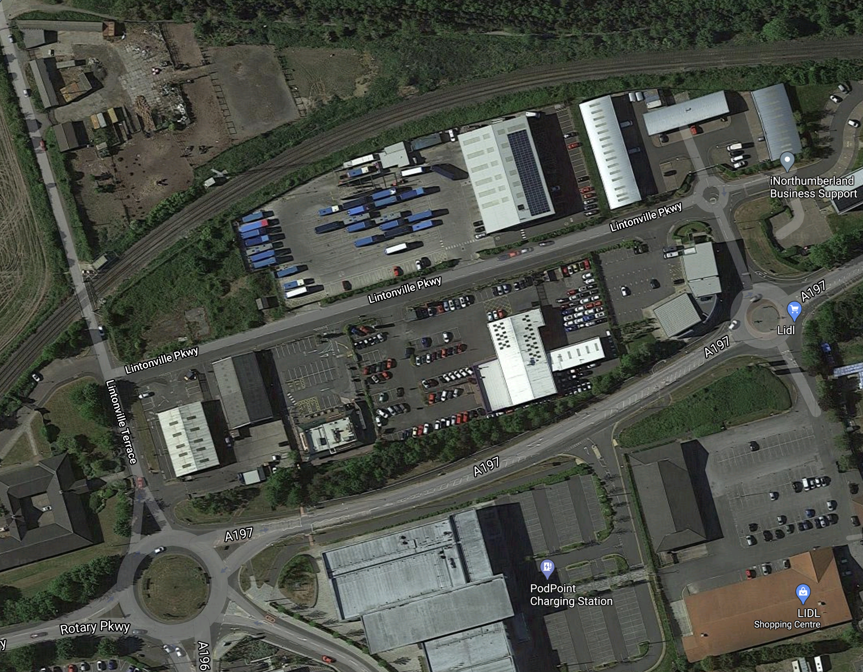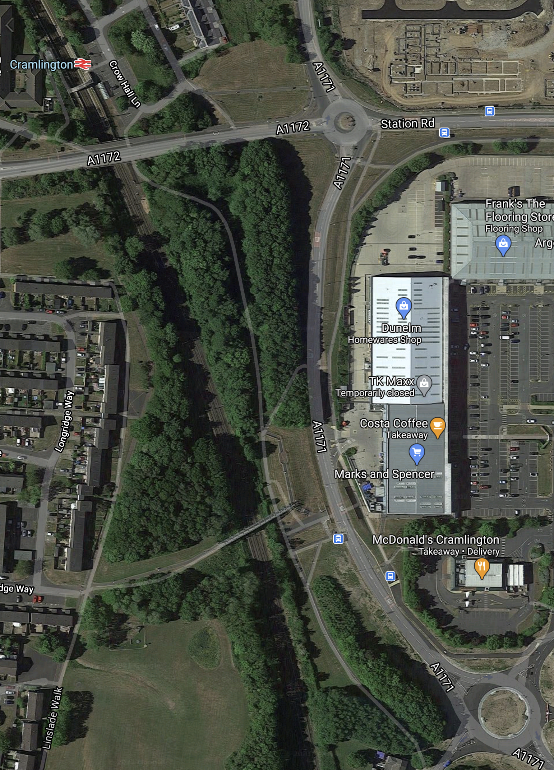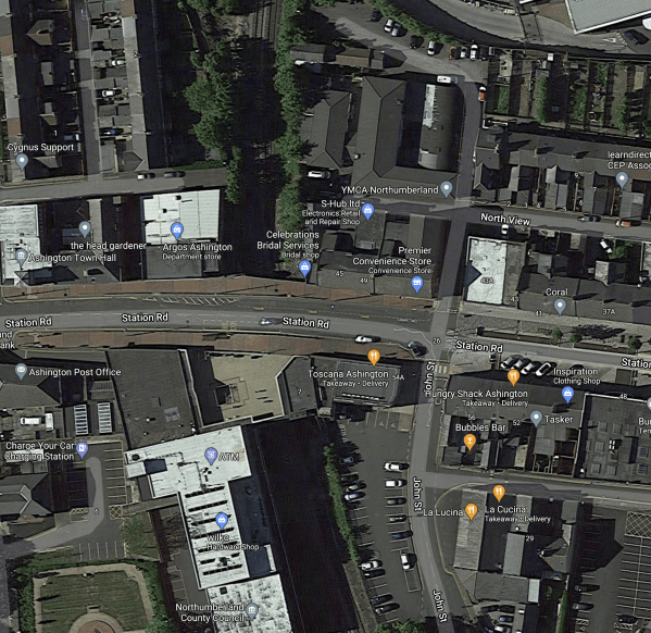 - The site of the new Bedlington station is indicated by the blue arrow.