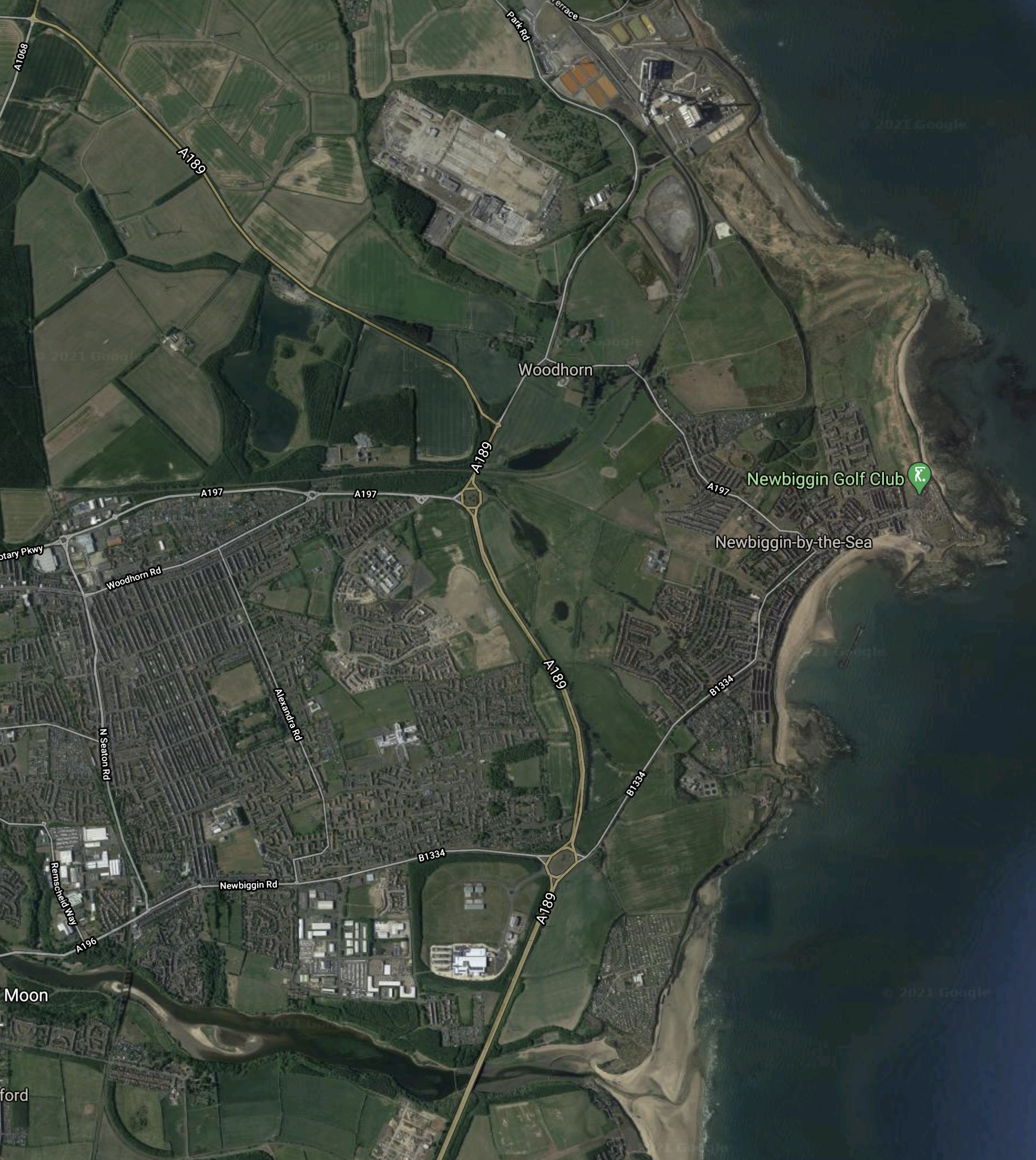 - Newbiggin-by-the-Sea is East of Ashington.